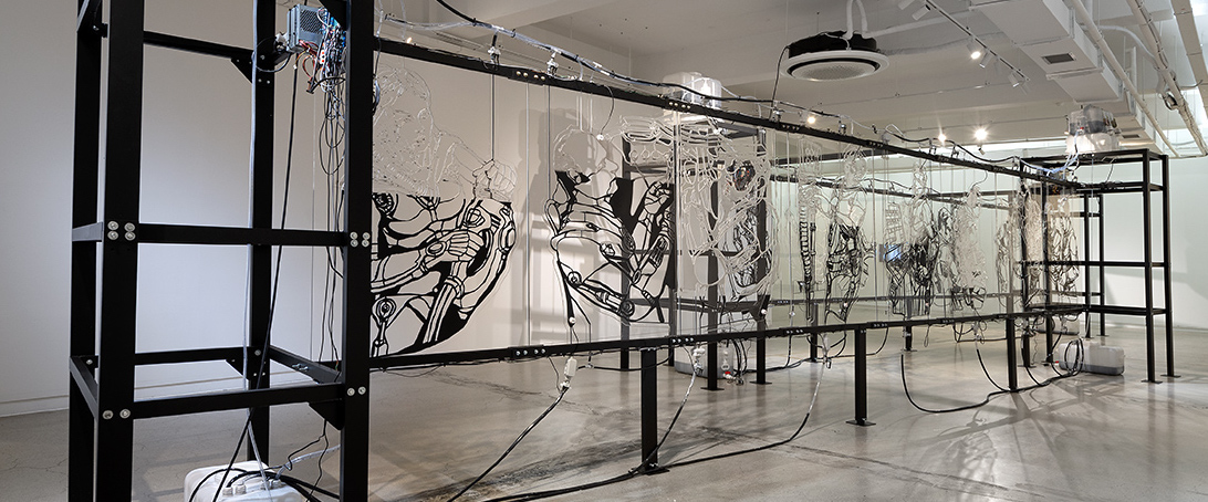 L’exposition « IA – Illusions des algorithmes » nous invite à lever le voile sur cette boîte et à révéler les illusions du monde numérique à travers l’art contemporain. Nous souhaitons nous inciter à réfléchir aux enjeux sociaux, politiques, économiques et environnementaux de l’intégration de l’IA dans différents domaines de notre vie : l’éducation, le commerce, le travail et, en fin de compte, l’art lui-même.