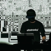 C’est la présence d’Alex Augier, à l’affiche du Grand Soir Numérique, qui nous a décidés de sortir de notre tanière pour assister aux concerts donnés à la Philharmonie dans le cadre de la biennale Nemo le 26 janvier dernier. Nous avions découvert oqpo_oooo, sa précédente performance A/V, lors du festival Elektra à Montréal en 2016. Campé au milieu d’un dispositif assez simple (une structure tubulaire et de la toile) qui forme une sorte de cube 3D, Alex Augier dispensait de la « techno-tronique » assez cinglante et articulée autour de motifs géométriques synchronisés sur les fréquences et la rythmique.